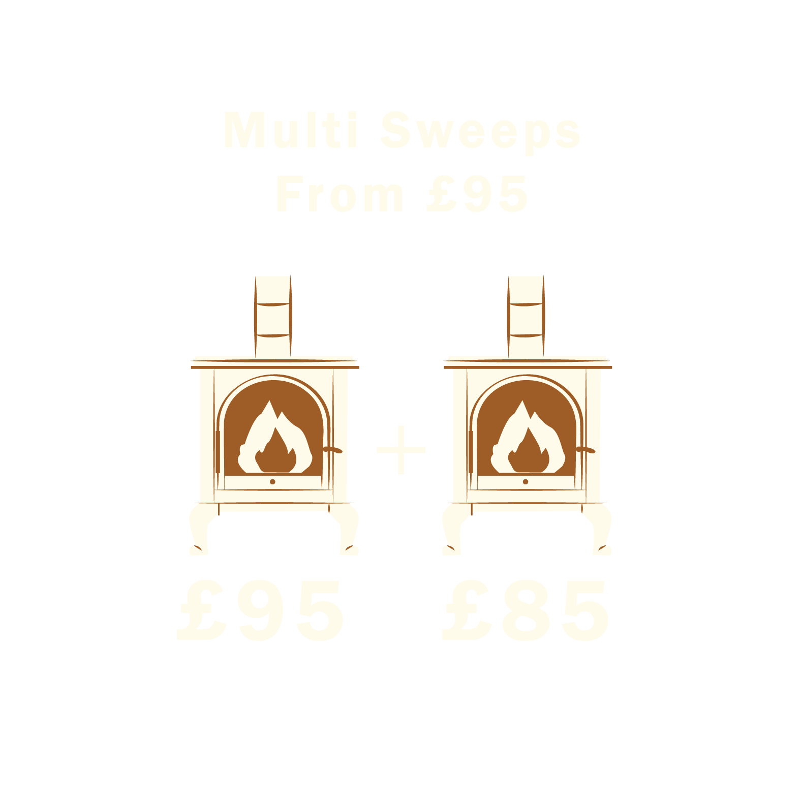 All chimney sweeps are fully certified and insurance approved. Each service includes appliance inspection and a smoke test. We recommend sweeping annually, or quarterly if used frequently. If you’d like a CCTV check, this can be added on for £15.